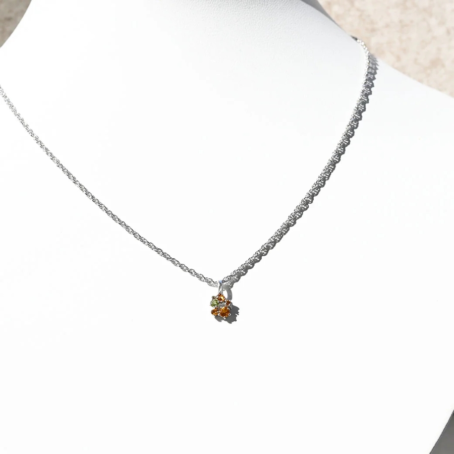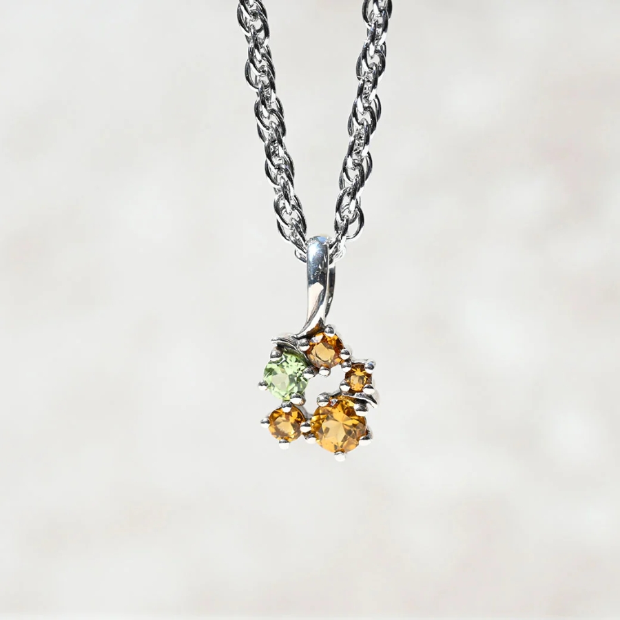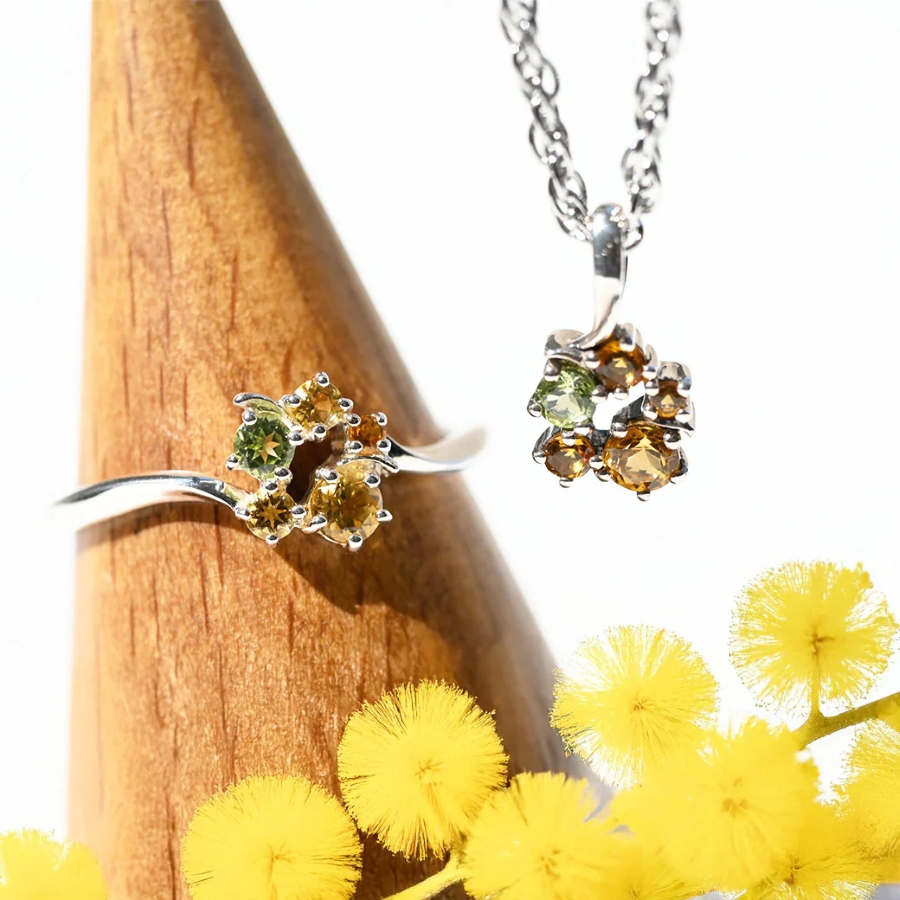 黄色いシトリンが花びらを、グリーンのペリドットが葉を表現し、天然石ならではの透明感が季節の喜びを運んでくれます。